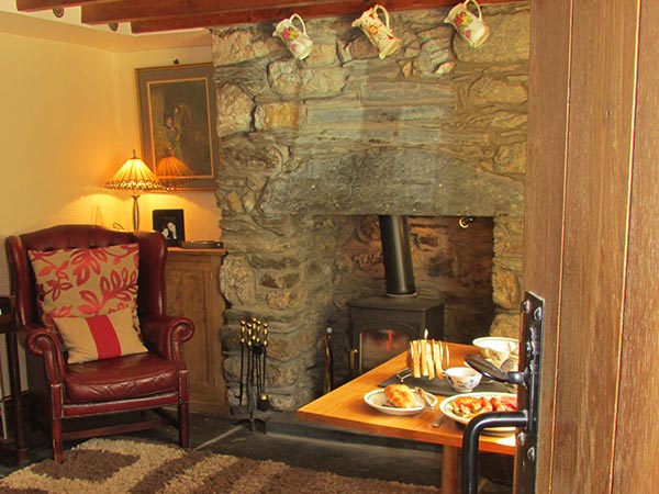 A separate sitting room with open oak beams, slate flooring and a log fire provide a cosy retreat for cold winter days; an ideal place to plan your next day exploring this beautiful part of Snowdonia.